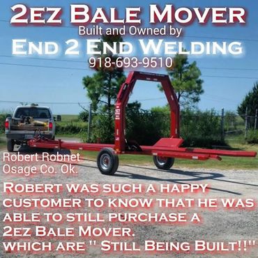 2ez Bale Mover Couldn't be more pleased with the quality materials and workmanship in this machine.. Everyone that sees it wants to know all about it! Empties the feild fast,and also,shortens feeding time in the winter. If someone stole this one, i would buy another for sure. Thanks for a well made product.