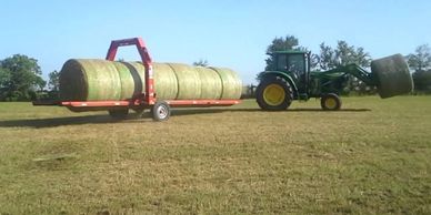 Oh,did i mention: WE unroll our bales in the feild when we feed out our hay but, with the 2EZ BALE MOVER you can unload bales, one at a time, at your feeders as easily as you can pick them up in the feild. What other round bale hay trailer can do that?''